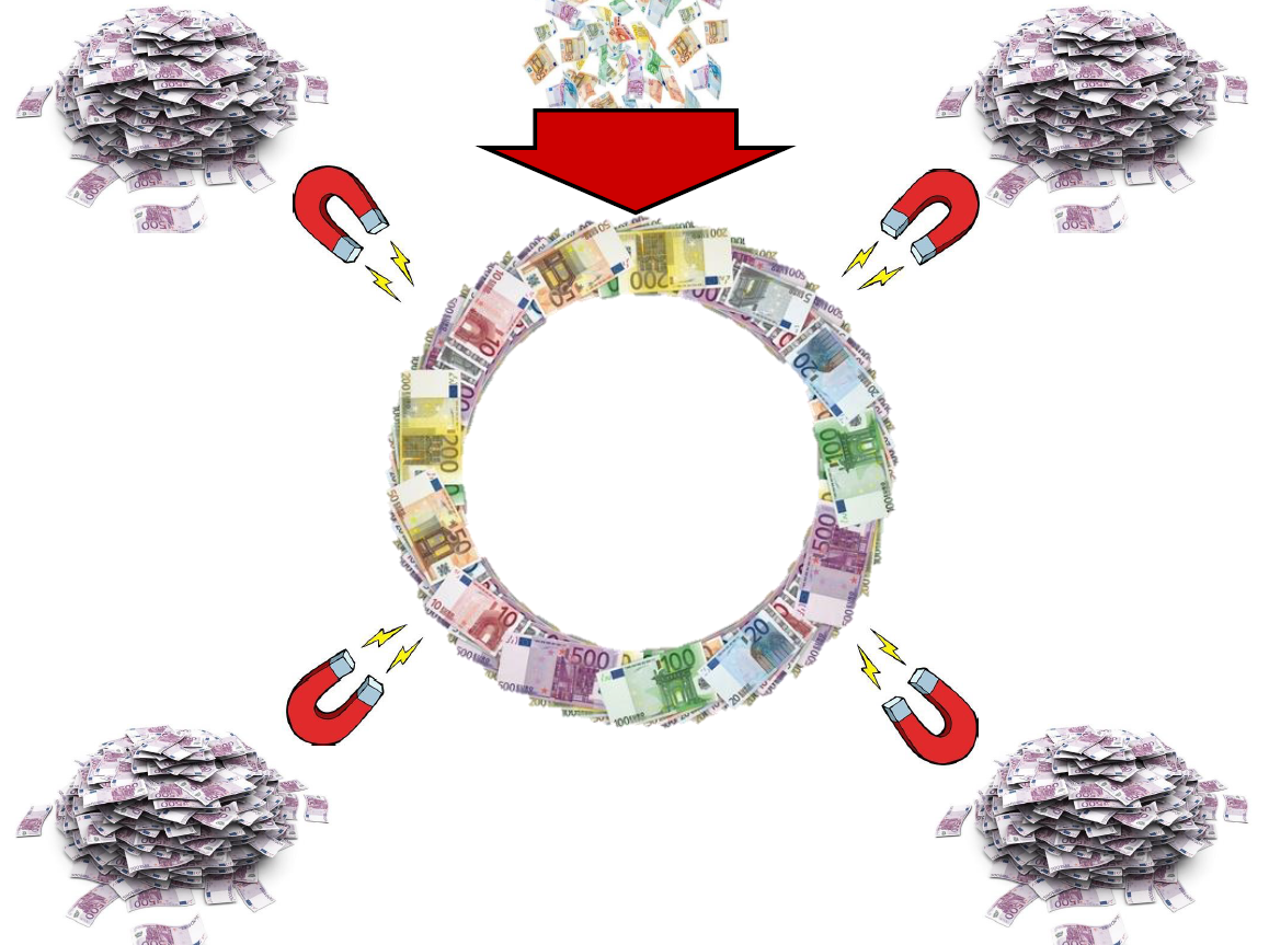 Geldvermögen, die sich außerhalb unseres Wirtschaftskreislaufes bilden (müssen), möchten sich vermehren und sorgen so dafür, dass immer mehr Geld dem Wirtschaftskreislauf entzogen wird.