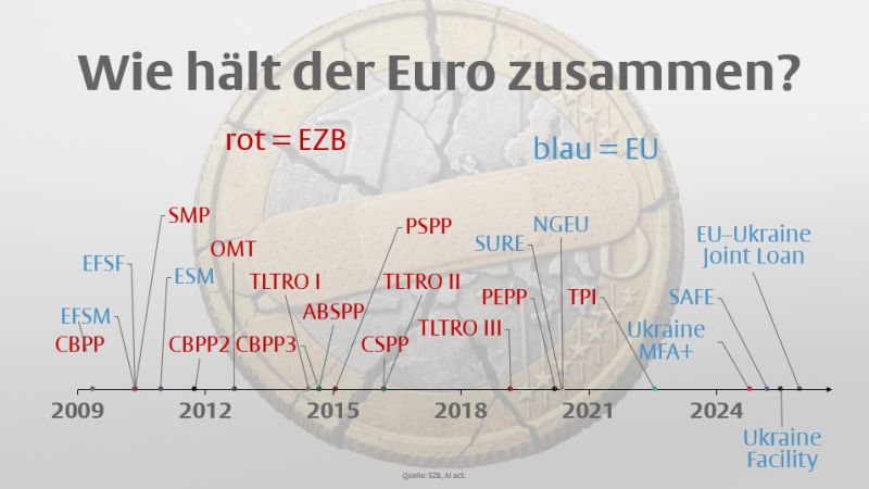Dabei ist es doch gerade beim Euro so, dass dessen Existenz nur durch Gesetzesbrüche und/oder Notstandsmaßnahmen ins Hier und Jetzt gerettet werden konnte: