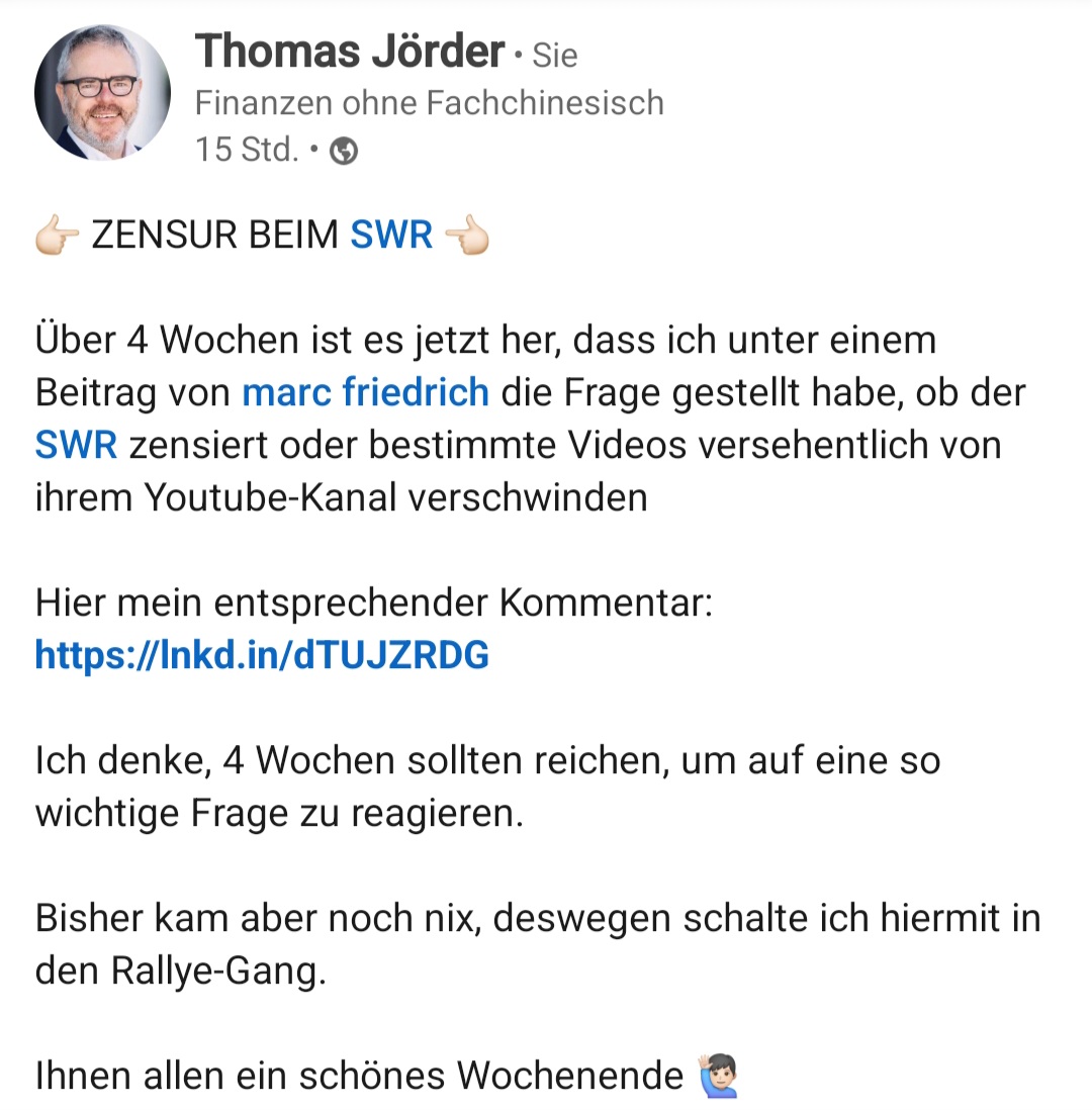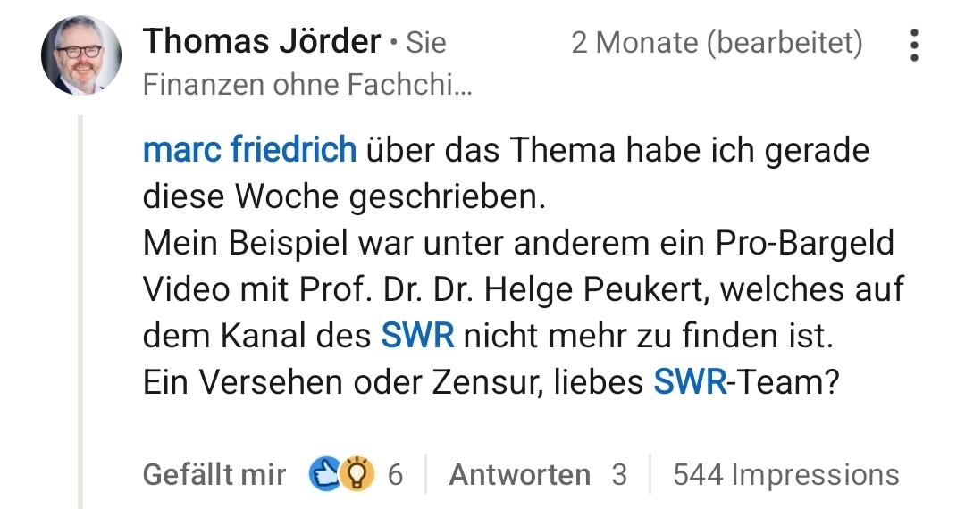 der auf diesen Kommentar unter dem Beitrag von Marc Friedrich noch immer nicht reagiert hat: