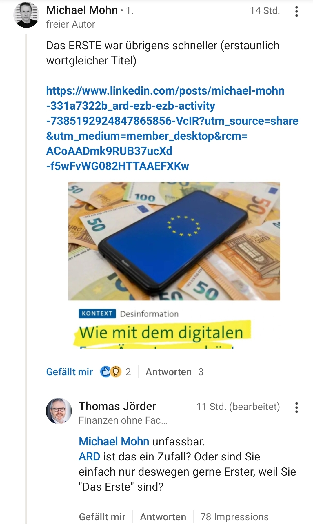 Und nun soll also der Digitale Euro kommen, ein Projekt, bei dem sich selbst die Bundesbank nicht einig ist, aus welchem Grund der eigentlich kommen soll:
